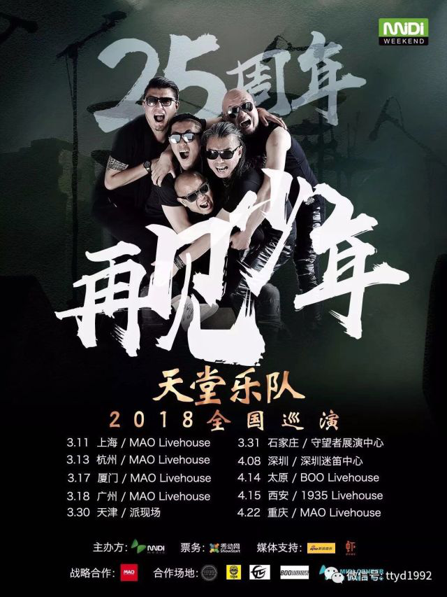 主唱雷剛,吉他手羊力,貝斯手九,鍵盤手永棟,鼓手仲夏組成的天堂樂隊,是富有理想主義精神的符號。天堂樂隊成立于1992年中國搖滾最火紅的年代,他們的音樂里,有搖滾精神,有故事,有血性,更有世上每個人想說的每一句話。26年過去了,他們依然在中國搖滾一線,堅守每個人心中最崇高的搖滾世界!